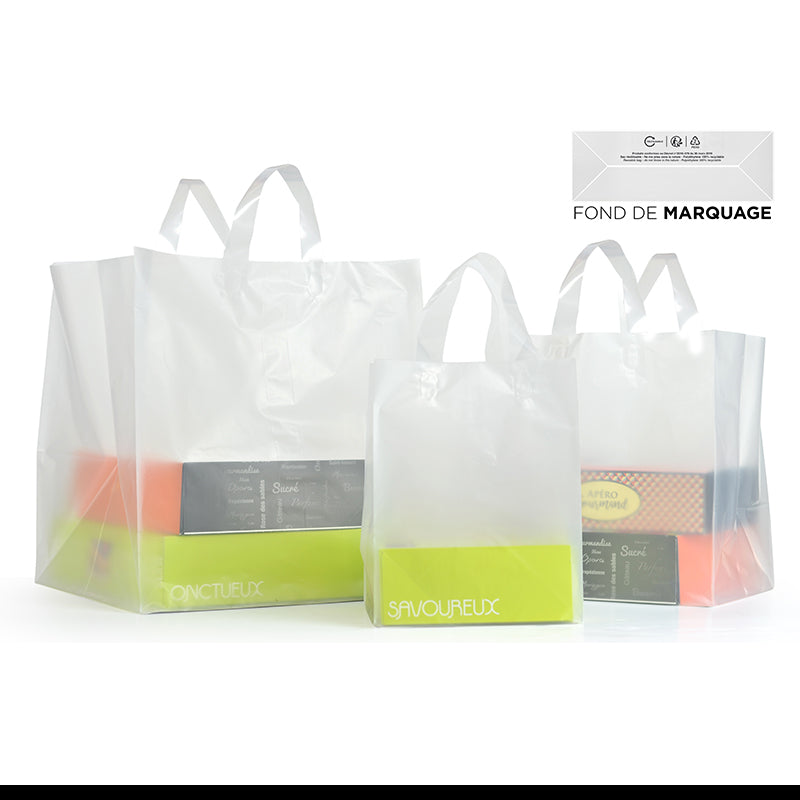 Sac plastique givré en PEHD translucide à fond plat, idéal pour les traiteurs et chocolatiers. Produit conforme au Décret n°2016-379 du 30 mars 2016. Sac en polyéthylène 100% recyclable et réutilisable plusieurs fois.